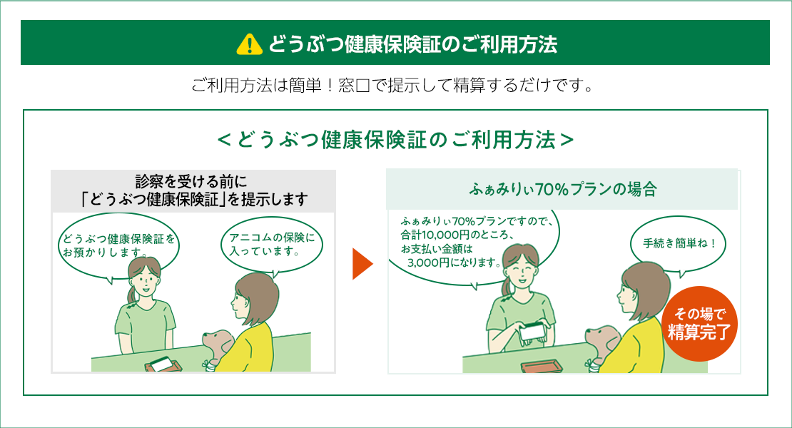どうぶつには、人と違って公的な健康保険の制度がないため、診療費は全額自己負担です。
